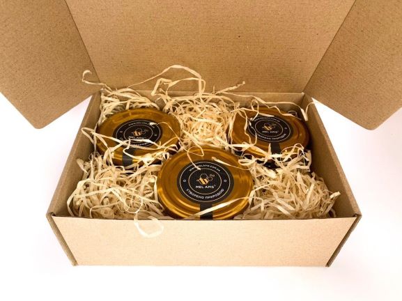Дегустаційний набір "3M меди" (3x285 г) в бурій гофроупаковці.