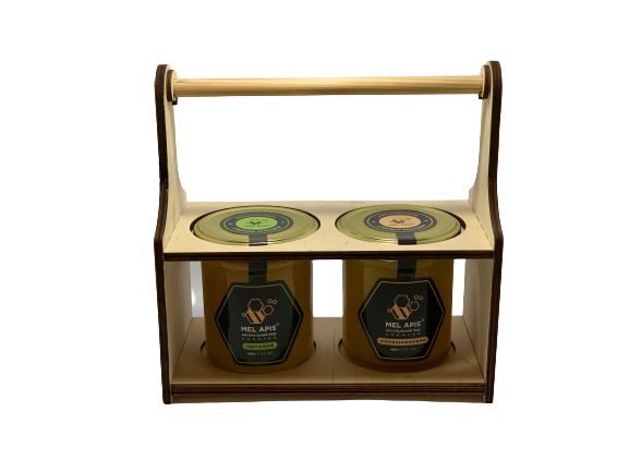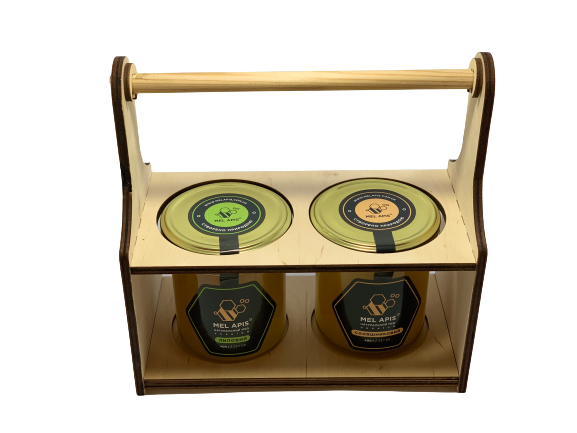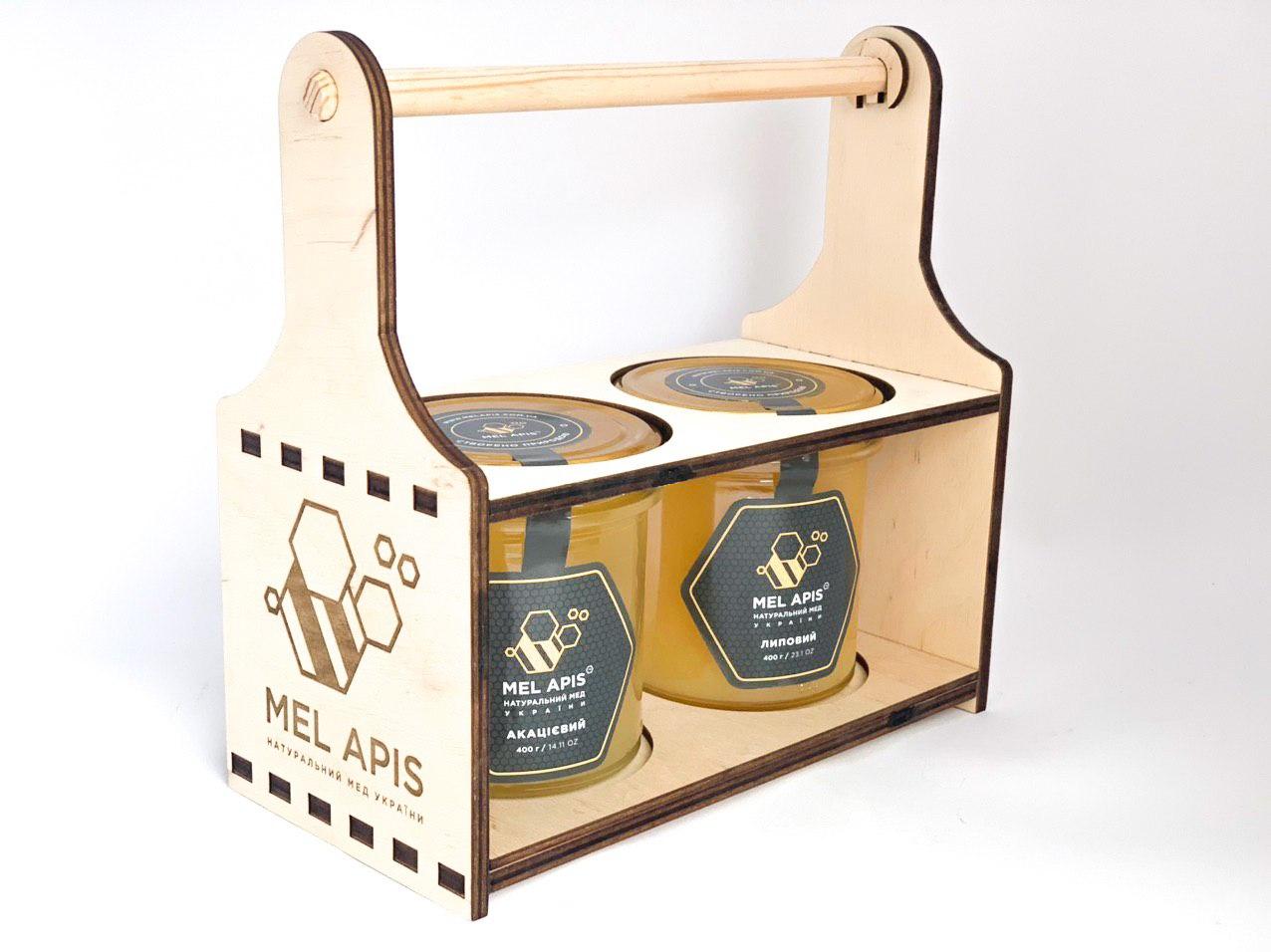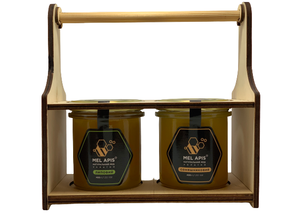Набір меду подарунковий "Бездоганний 2L "Липа&Сонях" (2x400г) ручної роботи зі зручною ручкою.