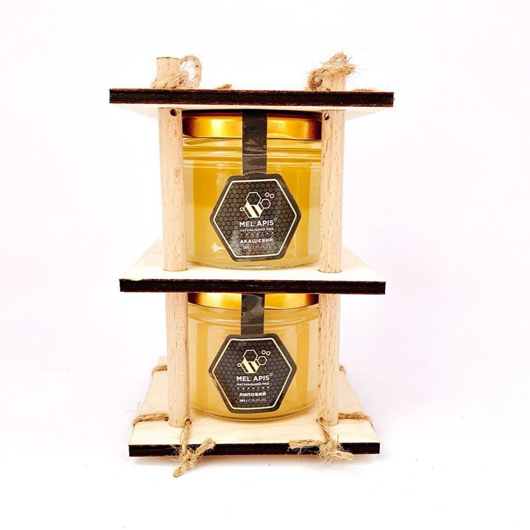 Набір меду подарунковий "Креативна Двійка "Акація&Липа" (2x285г)" ручної роботи зі зручними ручками.