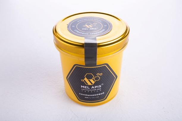 Склад: мед натуральний, монофлорний, соняшниковий вищого ґатунку.
